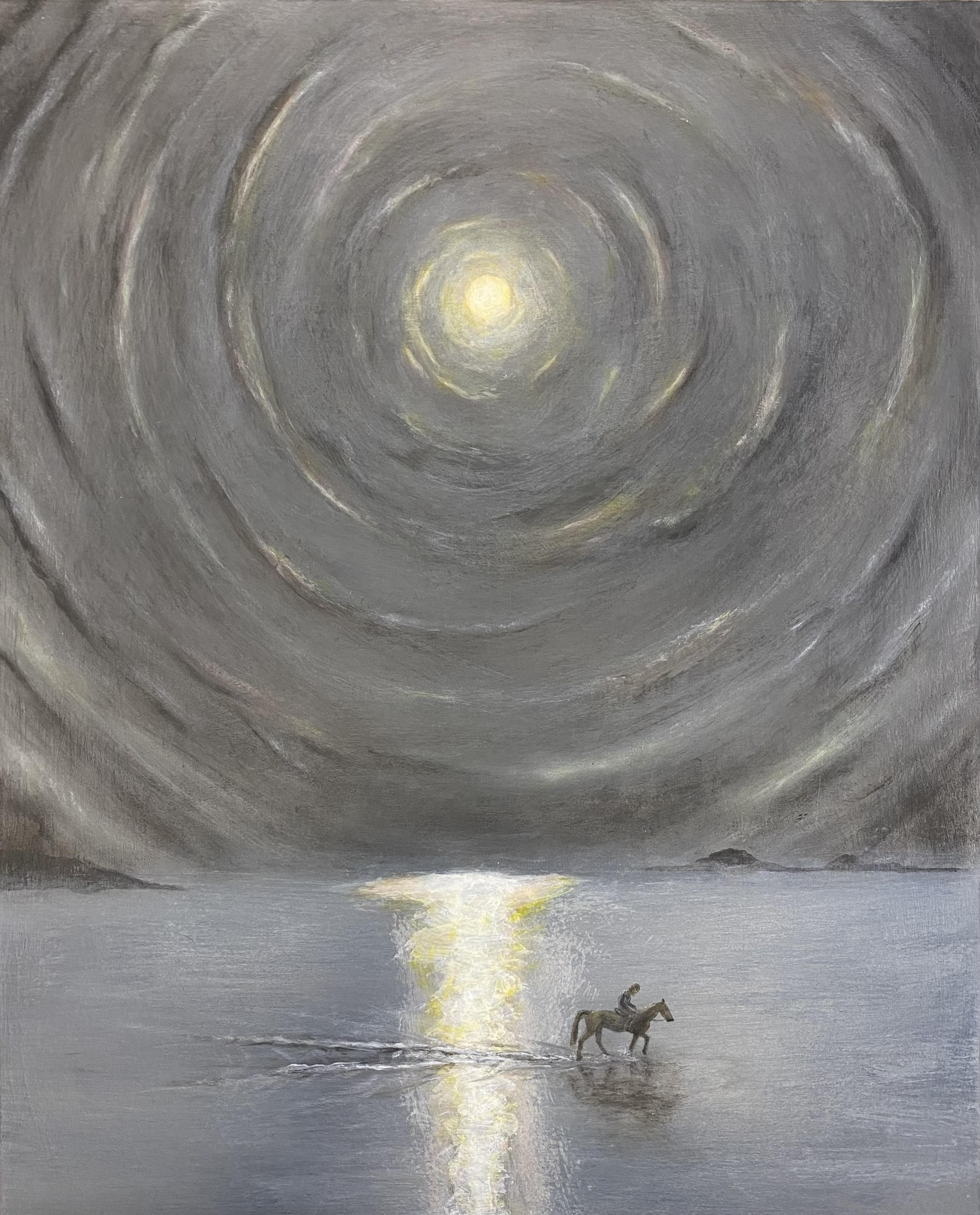 Udstillingens titel refererer også til en placering eller en tilstand, der eksisterer i rummet eller det metaforiske rige mellem himmel og hav, hvilket til tider fremkalder en følelse af ro.