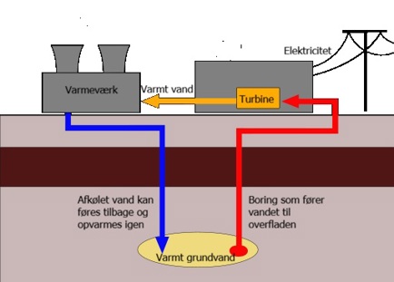 Mange steder i Island er grundvandet derfor også flere hundrede grader varmt. Hvis man pumper det op, bliver det til damp oppe ved jordoverfladen, og det skaber et højt tryk, fordi luften udvider sig. Det tryk kan man føre i rør og kamre og få en turbine til at dreje rundt. På den måde kan man lave elektricitet.