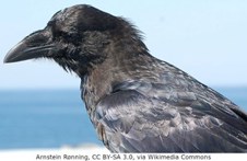 Ravnen lever over stort set hele Grønland også om vinteren. Den spiser alt, hvad den kan komme i nærheden af. Hvis du stiller en skraldepose udenfor, kommer ravnen og prikker hul i den for at finde mad. Ravnen er meget klog. Den driller slædehundene og stjæler blanke ting fra mennesker. Ravnen kan sige mange lyde og kan efterligne andre dyrs lyde. Hvis man er på rensdyrjagt, kan ravnen nogle gange vise jægeren vej til rensdyrene. Så kan den nemlig selv spise, de rester jægeren lader blive tilbage.