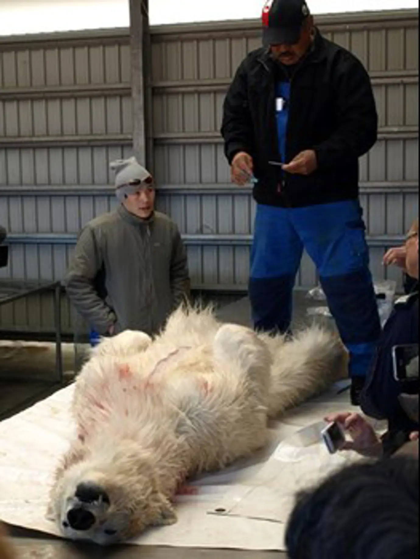 Isbjørnen er farlig for mennesker, men den kommer kun sjældent ind til byerne i Grønland. Så det er sjældent, at mennesker møder den her. Mennesker er til gengæld ret farlige for isbjørne, for hvert år bliver der skudt over 100 isbjørne i Grønland. Man spiser deres kød og bruger skindet til tøj eller til pynt.
