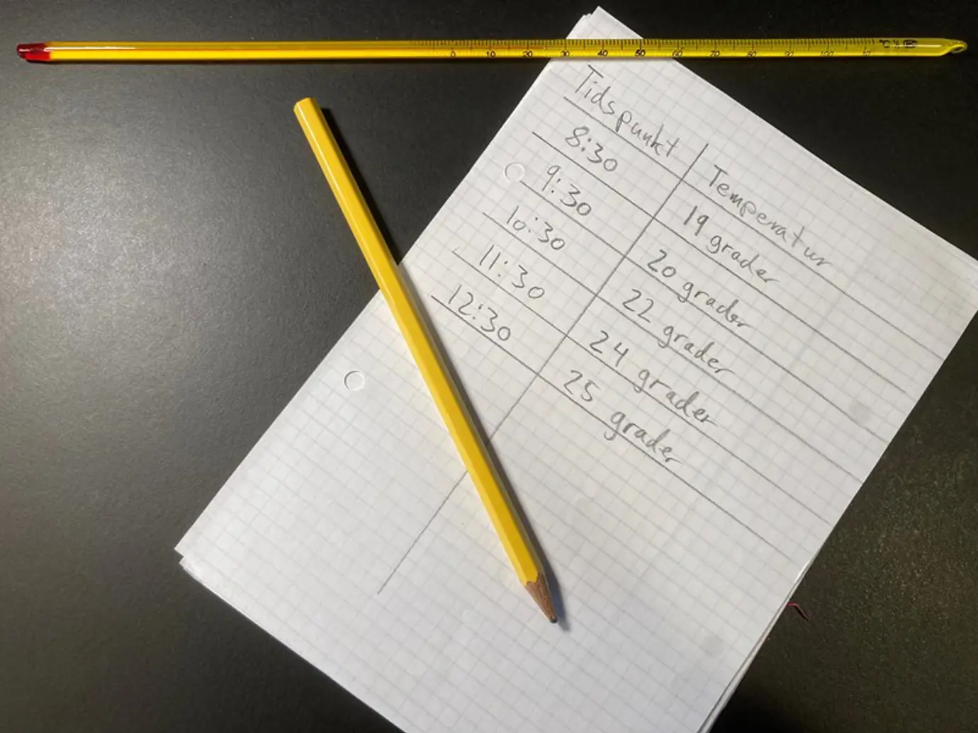 - Gå hver time ud og aflæs, hvad jeres termometer viser. Skriv det ned.