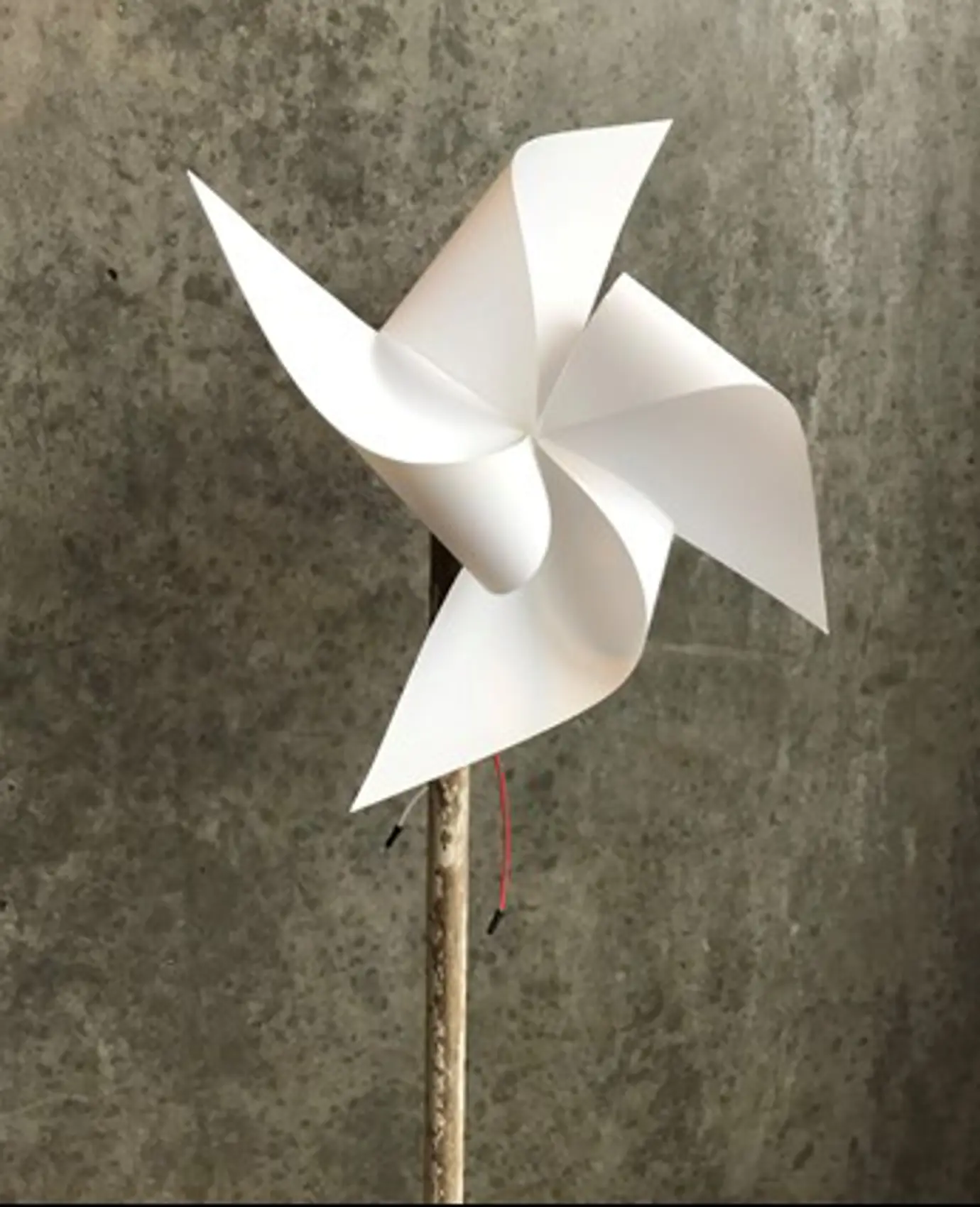 - Vingerne kan I lave ud af pap, gamle sodavandsflasker eller dåser. I kan fastgøre dem med en limpistol til en plastikkapsel, hvor I har lavet et lille hul med en nål eller kniv. I kan også folde en vindmølle ud af papir. Overvej, hvordan vingerne skal vende, for at få den bedste effekt.